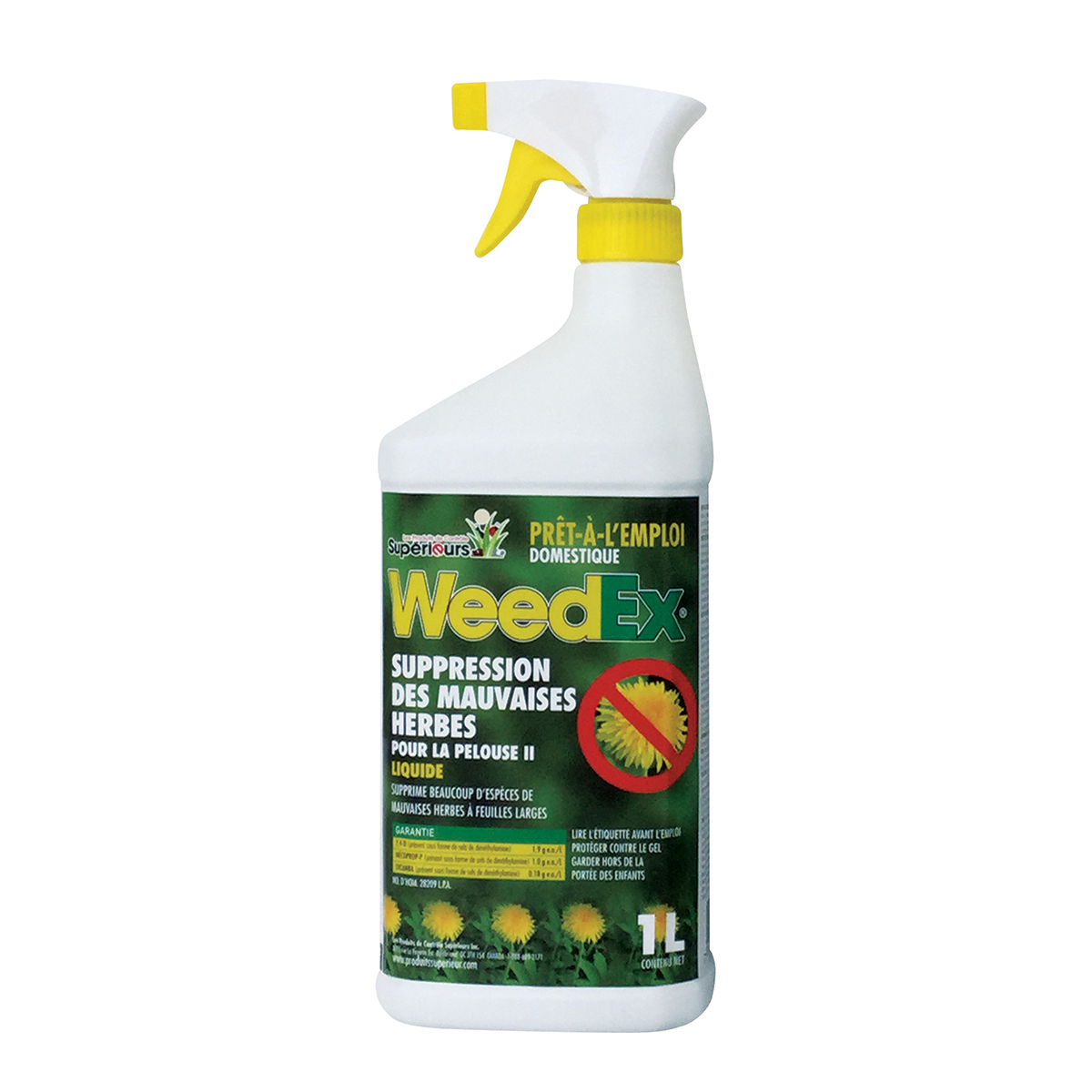 Herbicide liquide pour pelouse. Supprime plusieurs espèces de mauvaises herbes à larges feuilles du gazon.
