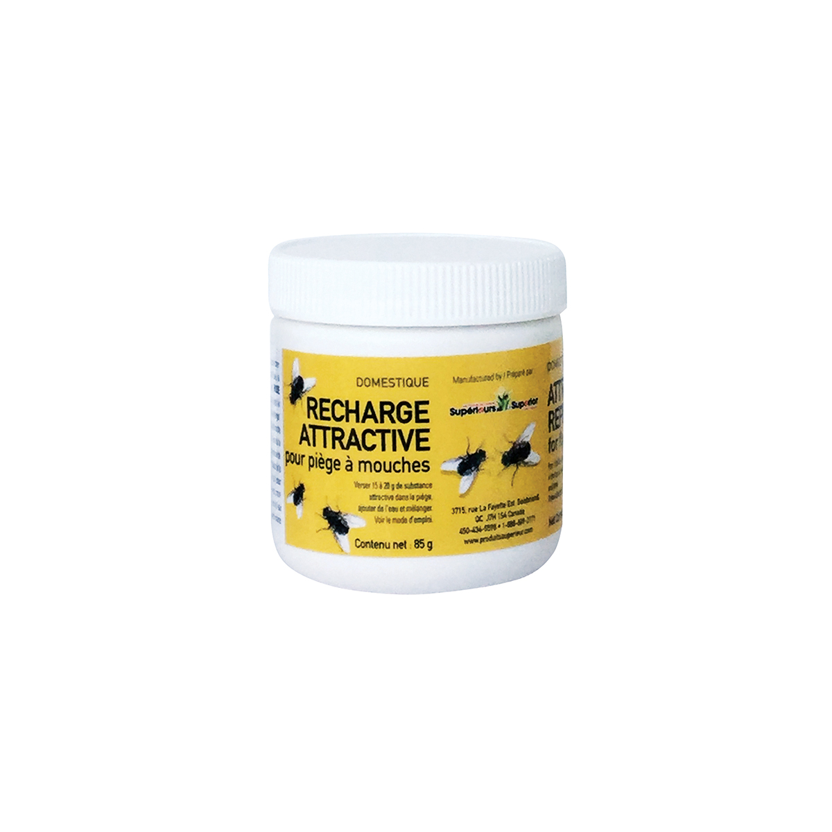 Poudre attractive à mélanger conçue pour attirer la plupart des espèces de mouches.